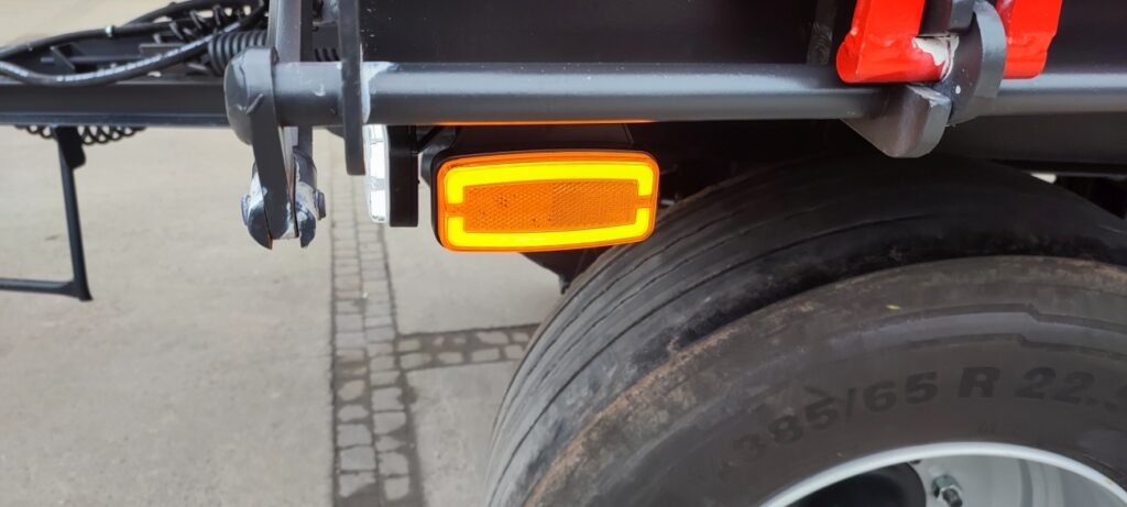 - z tyłu przyczepy – lampa ledowa do przyczepy w wersji zespolonej zawiera światło stopu, pozycyjne, kierunkowskaz i podświetlenie tablicy rejestracyjnej,