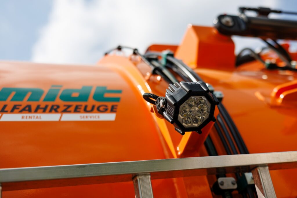 W przypadku opryskiwaczy potrzebne jest precyzyjne oświetlenie belek roboczych. Wąski kąt świecenia i biała barwa światła umożliwiają dokładną obserwację strumienia cieczy.