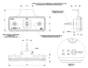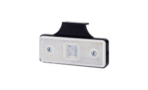 Lampa obrysowa prostokątna z odblaskiem, biała z wieszakiem z mocowaniem za lampą.