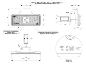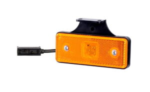 Lampa obrysowa prostokątna z odblaskiem, pomarańczowa z wieszakiem i zaciskiem.