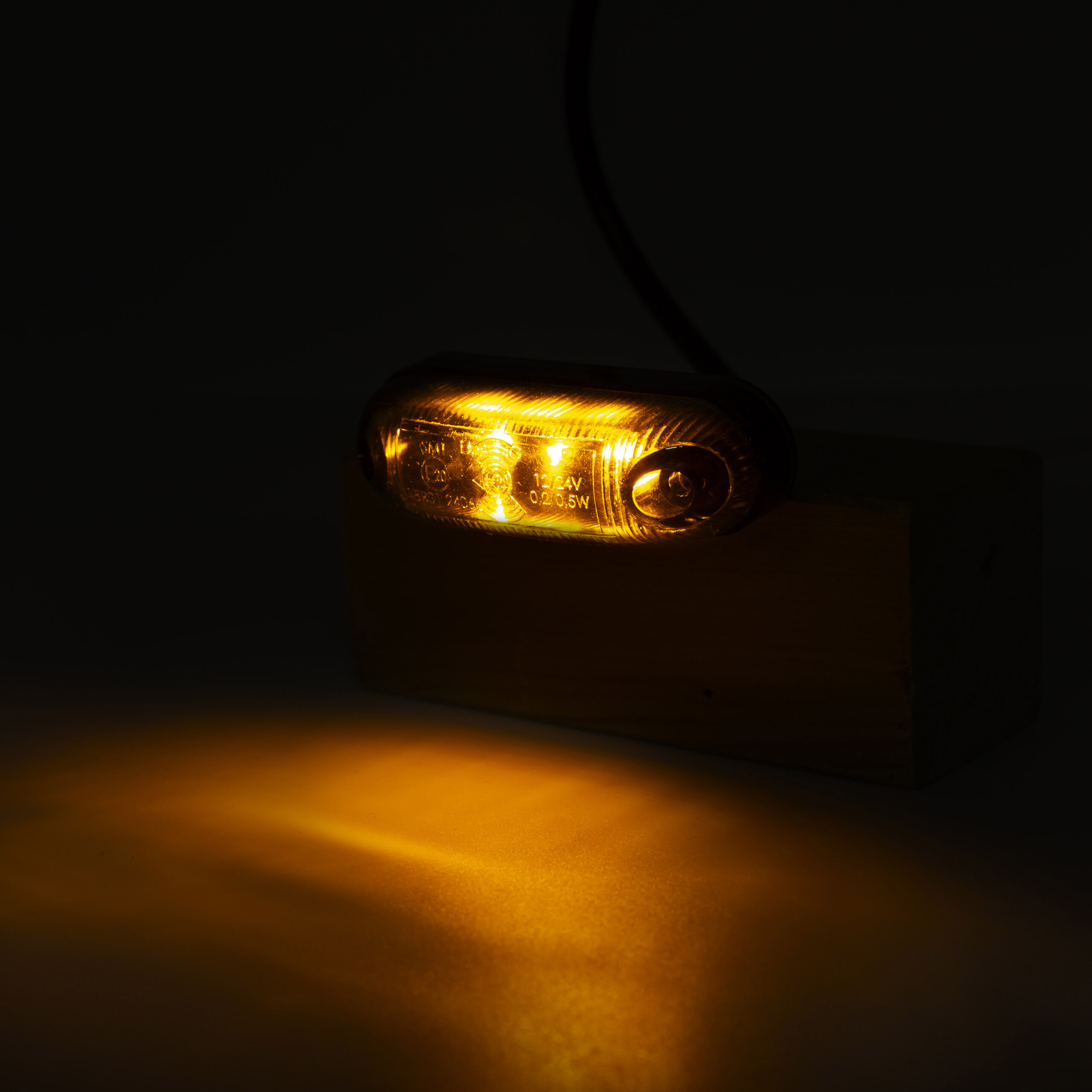 Lampa obrysowa boczna LD 390/GRAPHITE cechuje się uniwersalnym napięciem 12/24 V, niskim poborem energii (12 V-0,2 W, 24 V-0,5 W), wysoką klasą szczelności IP 68 oraz zakresem temperatur pracy od -30 st. C do +50 st. C. Lampa emituje wyraźne, pomarańczowe światło, podkreślając jej kształt. Poszukiwany design i wysokiej jakości materiały, wykorzystane przy jej produkcji, czynią z niej produkt najwyższej klasy.