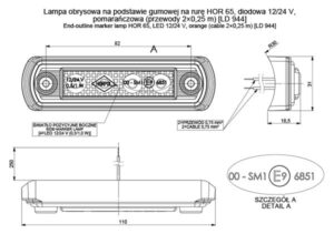 Lampa obrysowa na podstawie gumowej na rurę HOR 65,diodowa 12/24 V, pomarańczowa (przewody 2×0,25 m)