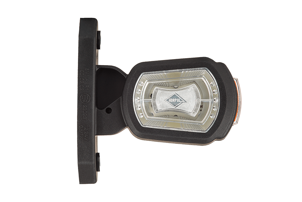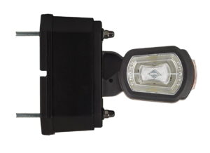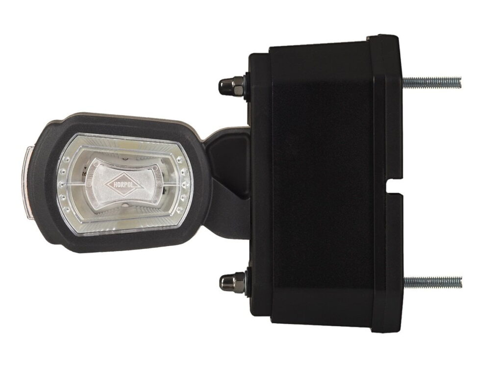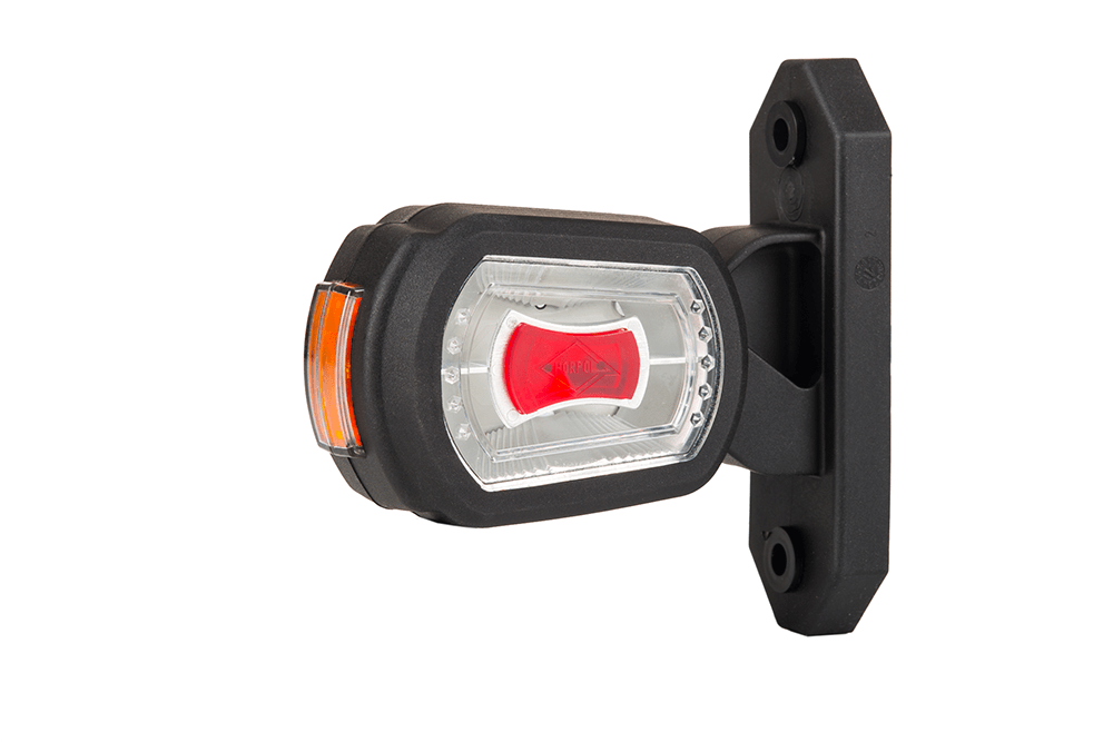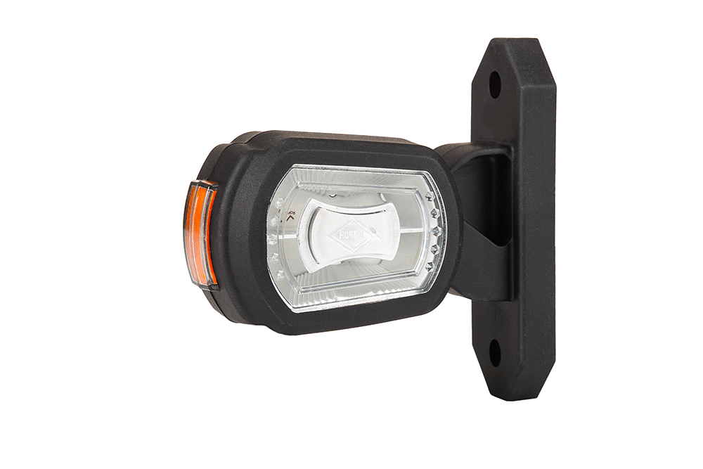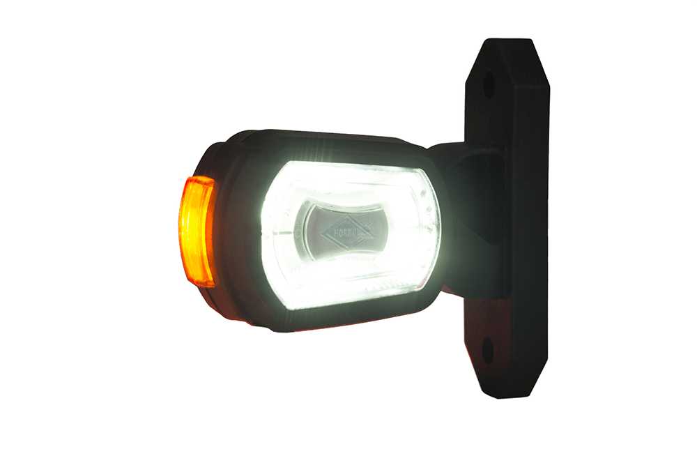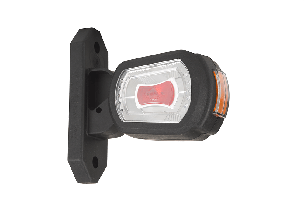 Lampa obrysowa trzyfunkcyjna na wysięgniku krótkim prostym HOR 101, z modułem czujnika cofania, diodowa 12/24 V, lewa (okrągły przewód 3×0,5 mm2, długość 1,5 m).