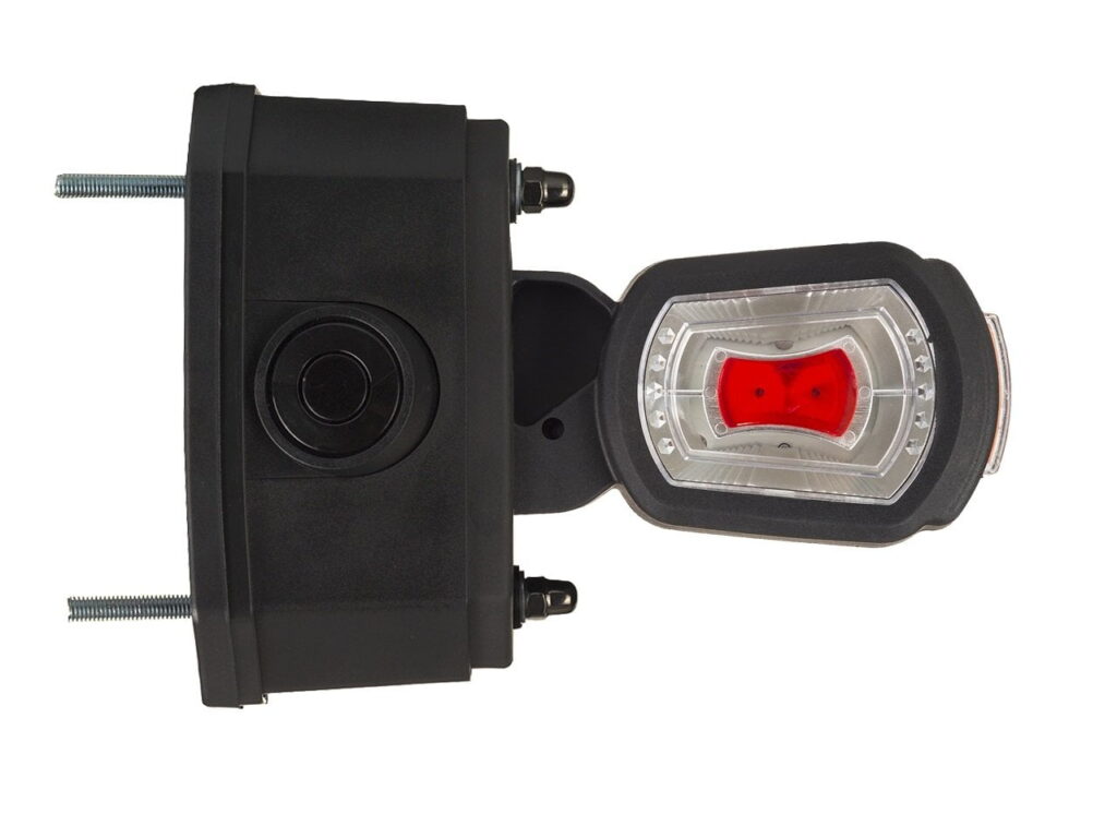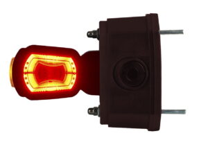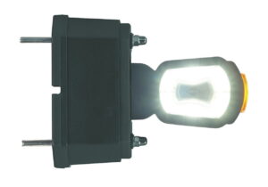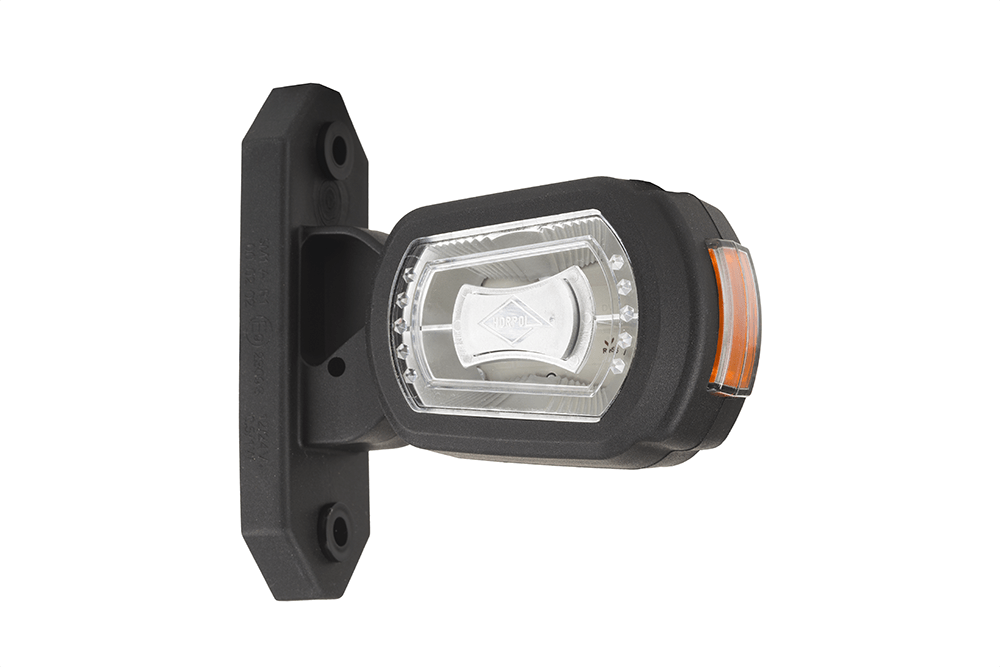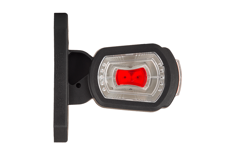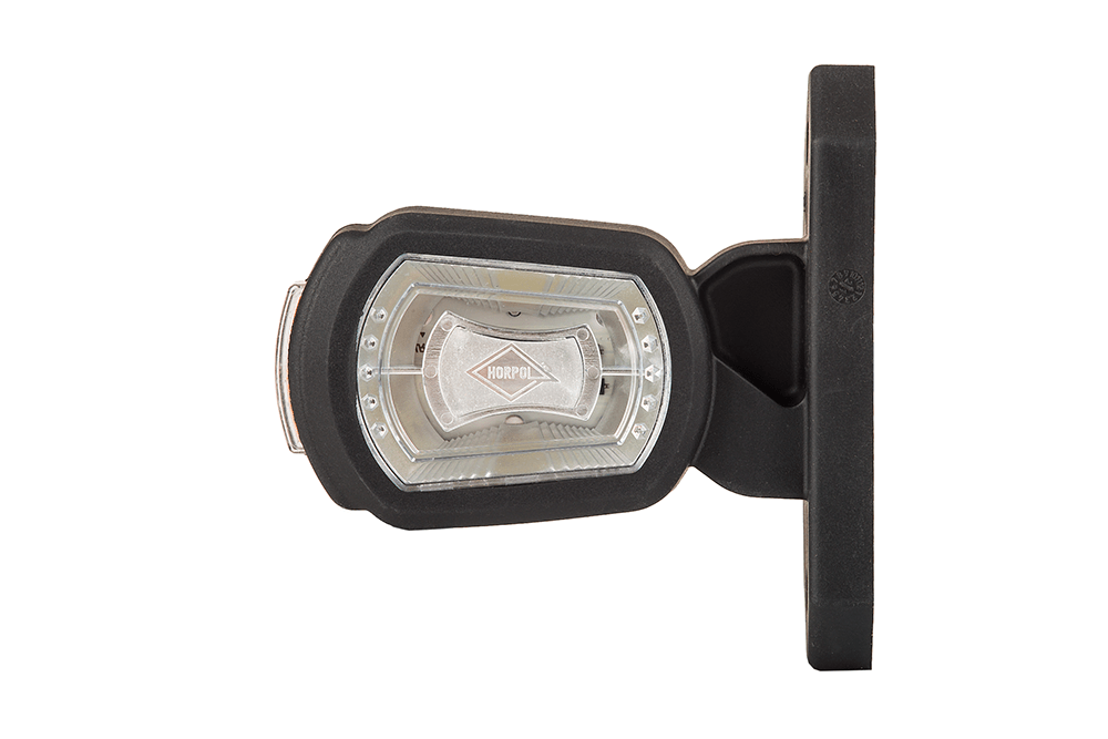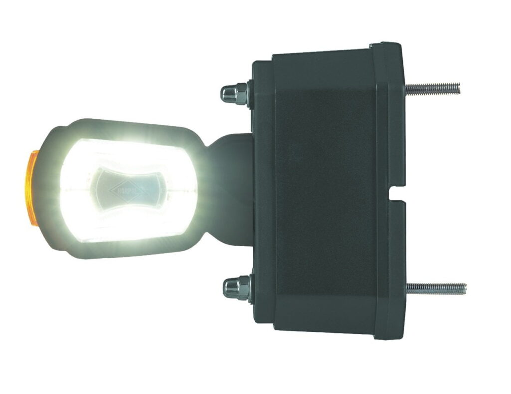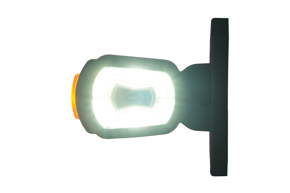 Lampa obrysowa trzyfunkcyjna na wysięgniku krótkim prostym HOR 101, z modułem czujnika cofania, diodowa 12/24 V, lewa (okrągły przewód 3×0,5 mm2, długość 1,5 m).