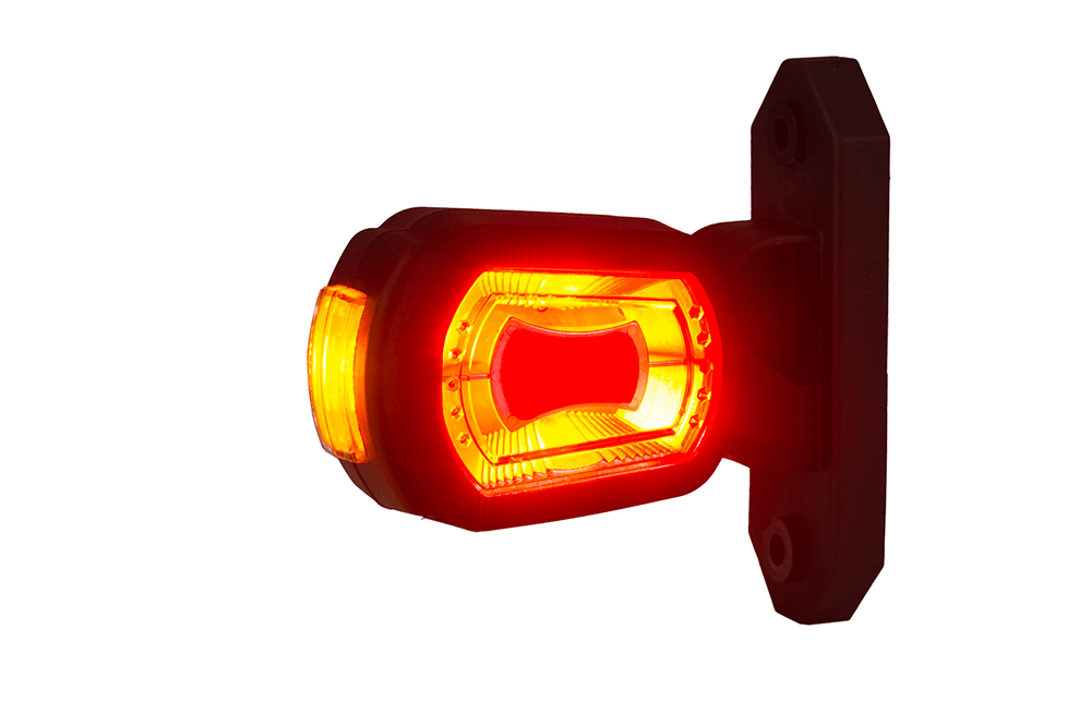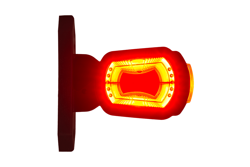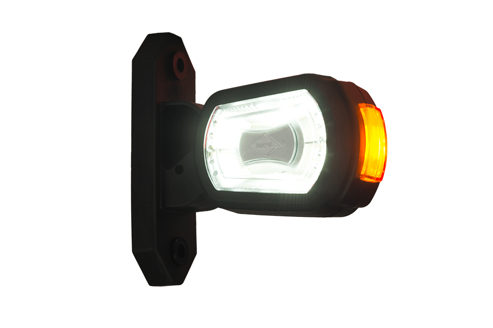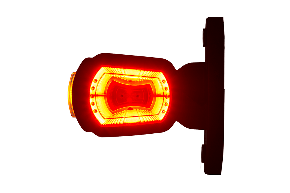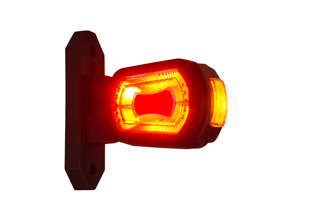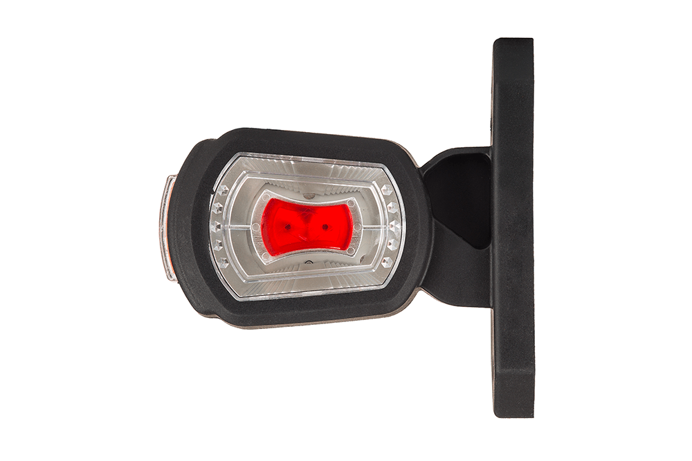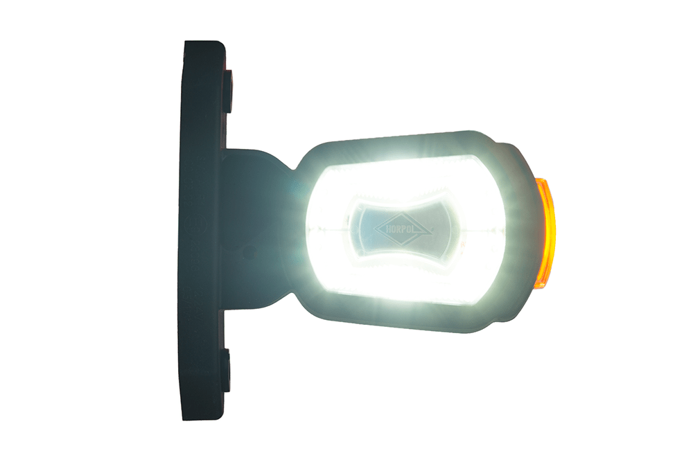 Lampa obrysowa trzyfunkcyjna na wysięgniku krótkim prostym HOR 101, z modułem czujnika cofania, diodowa 12/24 V, lewa (okrągły przewód 3×0,5 mm2, długość 1,5 m).