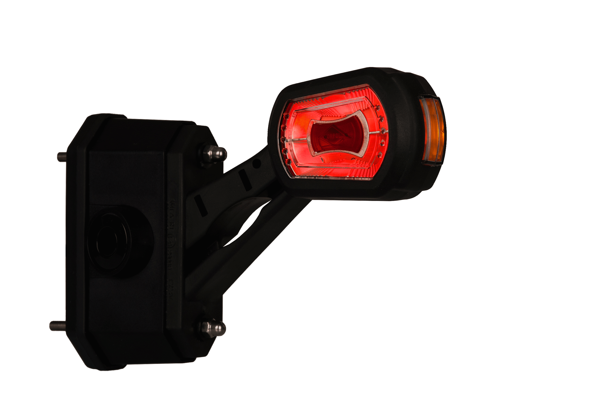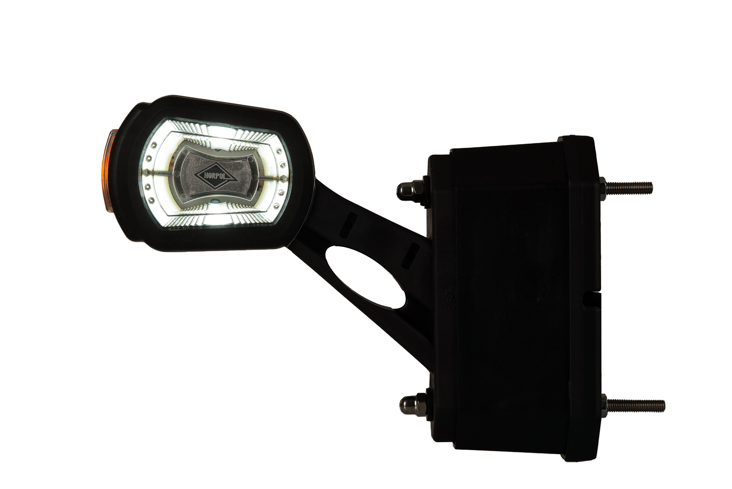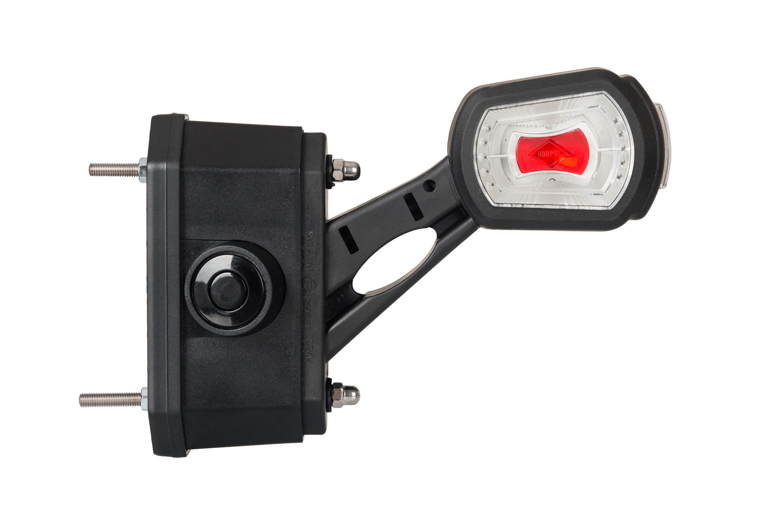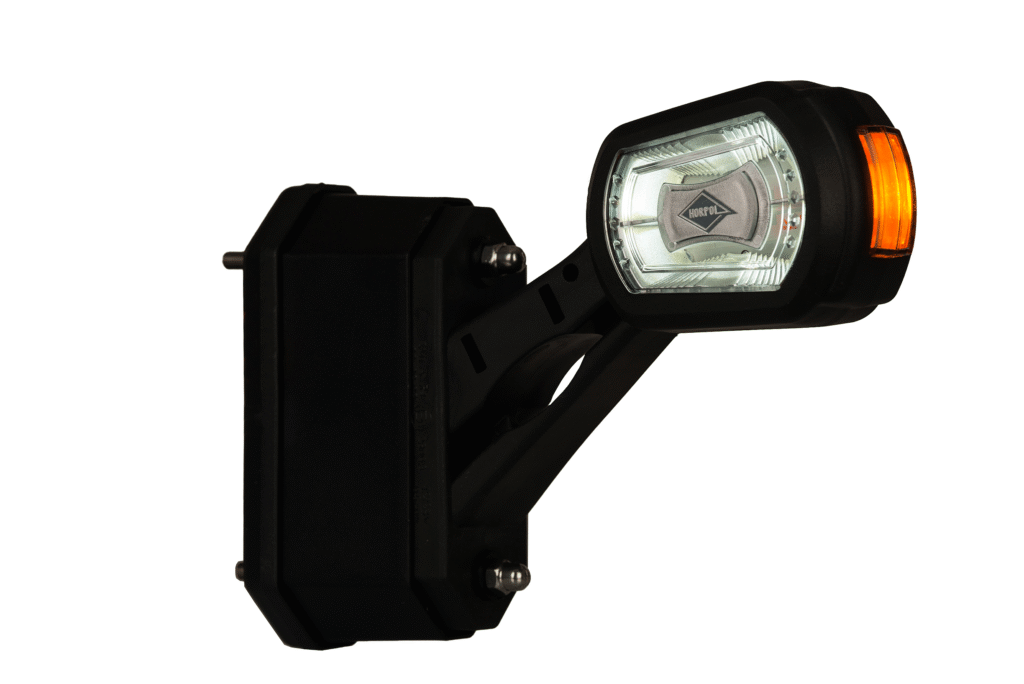 LDCC 2725 – Lampa obrysowa trzyfunkcyjna na wysięgniku krótkim HOR 101 z czujnikiem cofania, diodowa 12/24 V, prawa (przewód 3×0,5 mm2, długość 1,5 m)