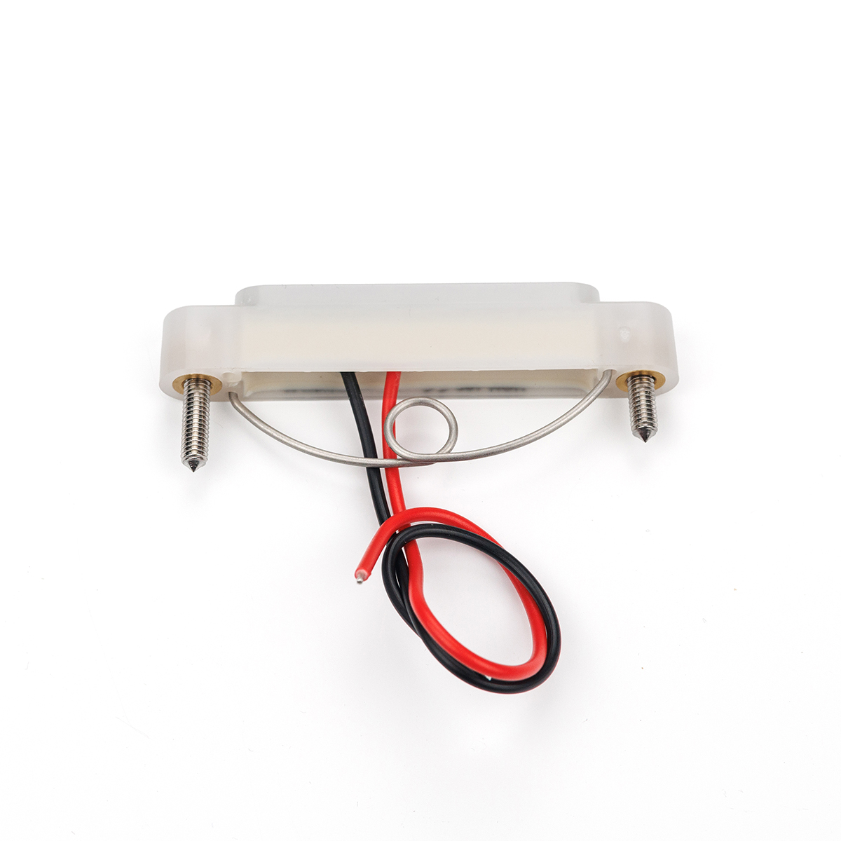 Do zasilania zastosowano dwa przewody o przekroju 0,5 mm² i długości 13 cm – czerwony przewód odpowiada za biegun dodatni (+), natomiast czarny za biegun ujemny (–). Dla prawidłowego działania urządzenia kluczowe jest zachowanie właściwej polaryzacji połączeń elektrycznych.