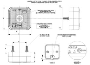 Lampa obrysowa kwadratowa z odblaskiem, czerwona