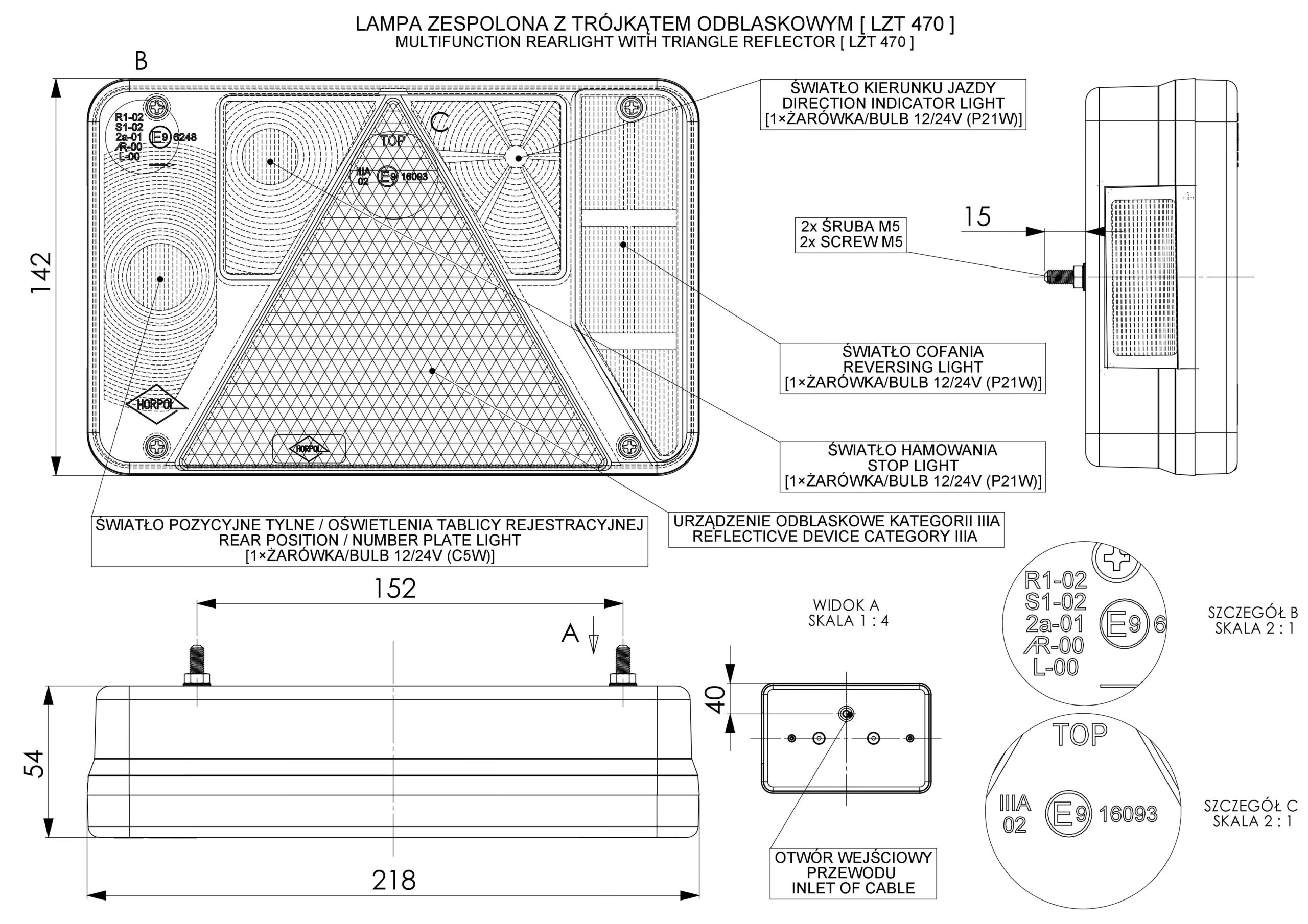 Lampa zespolona tylna z trójkątem odblaskowym HOR 45, pojedynczy kierunkowskaz, prawa