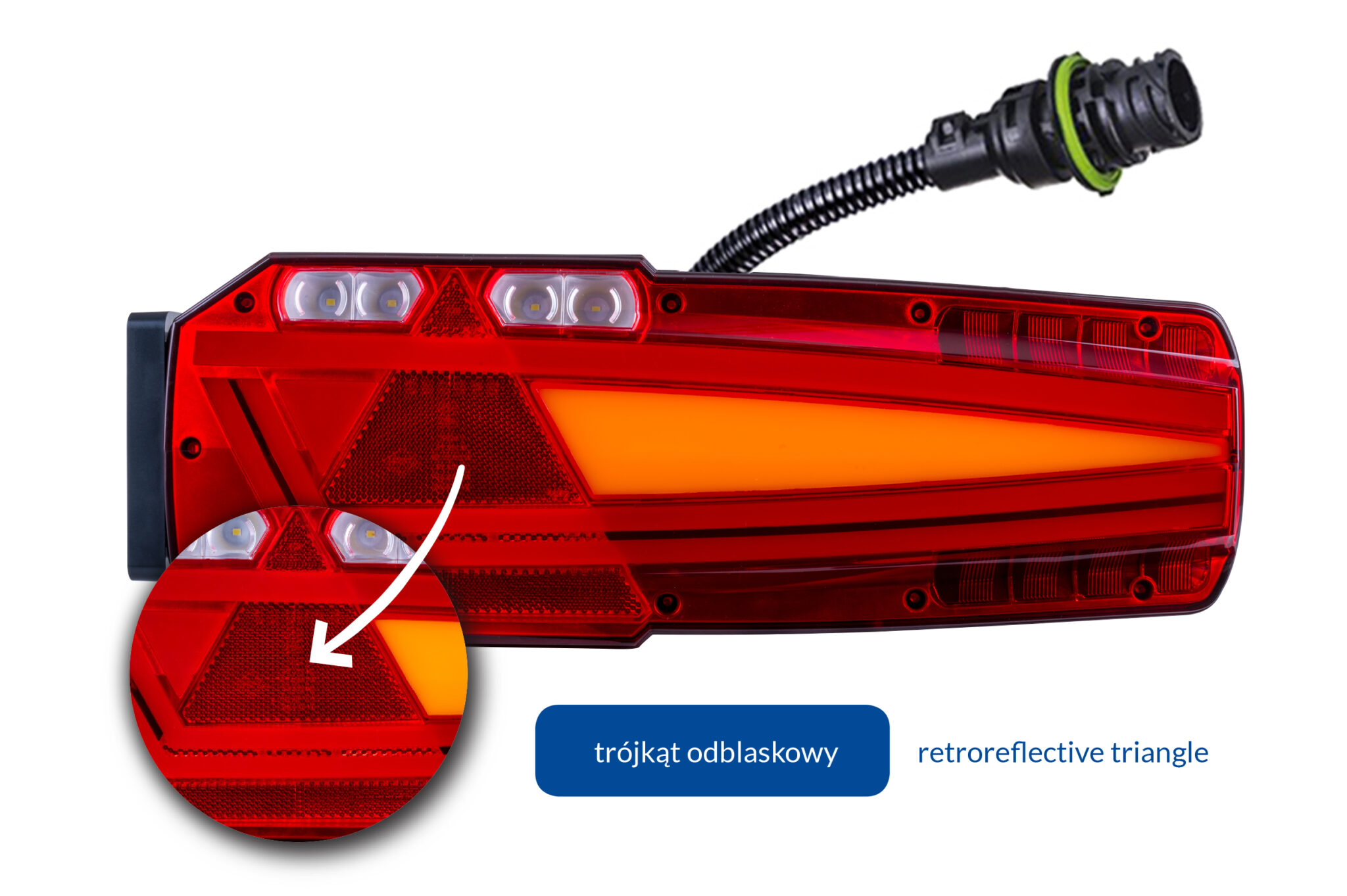Zestawy lamp o kodach LZD 3049/H93/AMP (lewa) oraz LZD 3050/H93/AMP (prawa) z trójkątem odblaskowym przeznaczone są do przyczep, naczep, lawet oraz maszyn rolniczych.