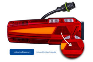 Zestawy lamp o kodach LZD 3049/H93/AMP (lewa) oraz LZD 3050/H93/AMP (prawa) z trójkątem odblaskowym przeznaczone są do przyczep, naczep, lawet oraz maszyn rolniczych.